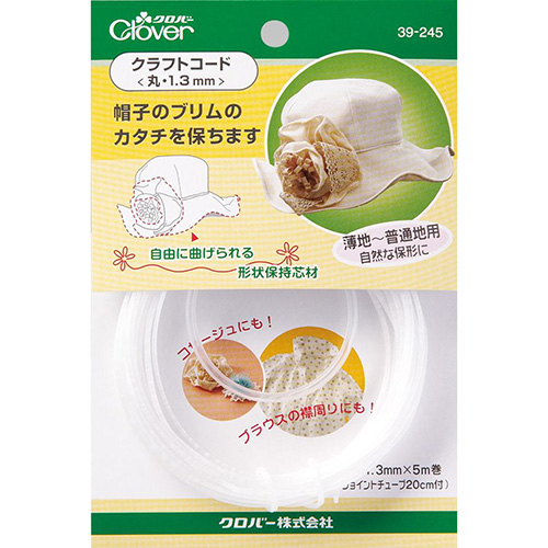 帽子のブリム(つば)の縁に入れカタチを保てるようにしたいときに使用するコード 薄地~普通地用 自由に曲がって、作品のデザインに動きを与えて帽子のブリム、ぬいぐるみやコサージュ作りにも!! 直径1.3mm×5m巻
