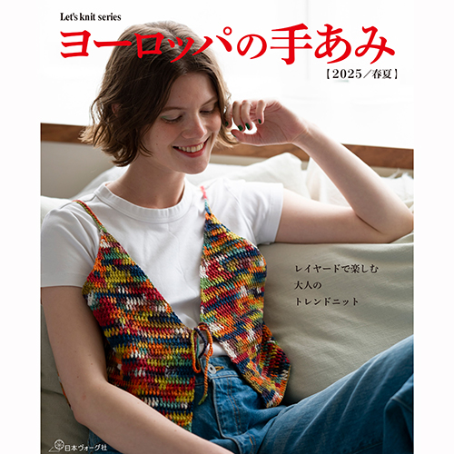 カラフルな段染め糸やキラキラしたファー素材など、 トレンドデザインを取り入れた棒針編み&かぎ針編み作品集 レイヤードスタイルのニットをメインに 着心地の良いプルオーバーやカーディガンなどウエア15点と バッグ・帽子など小物5点を紹介 出版:日本ヴォーグ社