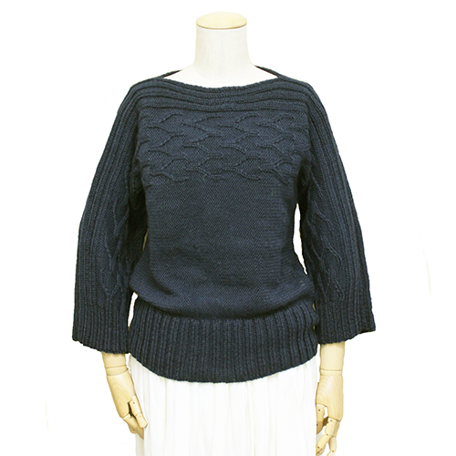 袖口から身頃に向かって編む横編みのセーターです。