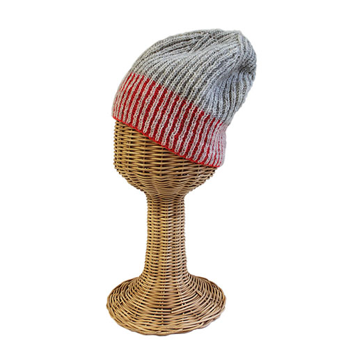 ナチュラルカラーにネオンカラーをアクセントにしたニットキャップです。ブリオッシュ編みもチャレンジしてみたい技法の1つですね。