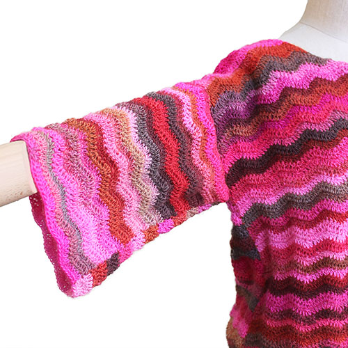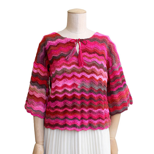 発色の良いピンク系段染めがジグザグ模様と合わさって楽しい表情が生まれます。
