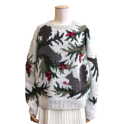 ふわふわした尻尾がポイントのリスのプルオーバー。