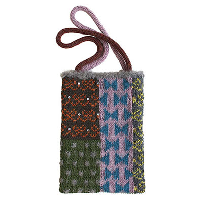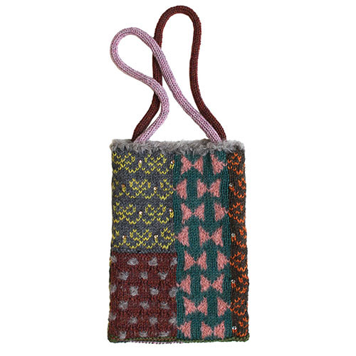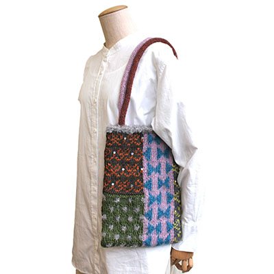 ベストとお揃いのパッチワークバッグは、落ち着いた配色になることの多い冬のコーディネートのアクセントになるよう、明るい配色にしました。