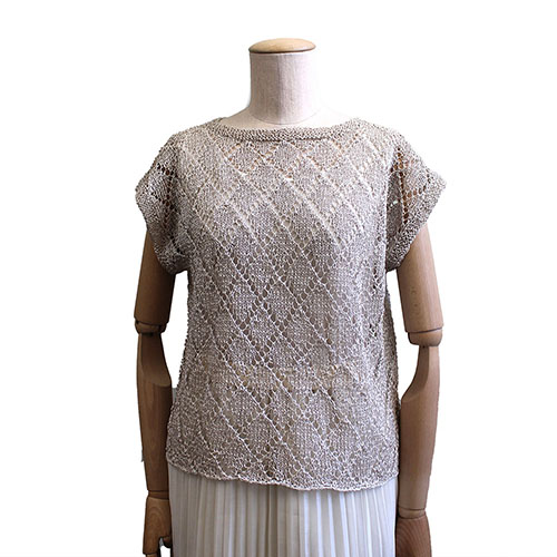 夏の陽射しを受けてキラキラと輝くラメが華やかなノースリーブニット。