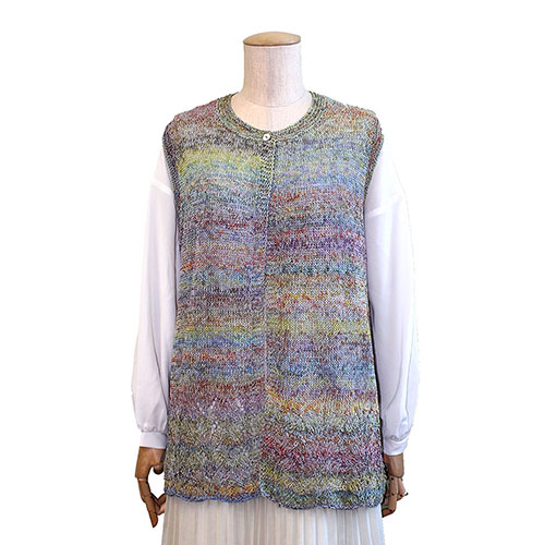 様々な色がミックスした糸で編むロングジレは、スリーシーズン着回しがききます。