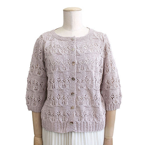 人気のリーフ模様をアレンジした、スモーキーピンクが春らしいキュートなカーディガン。