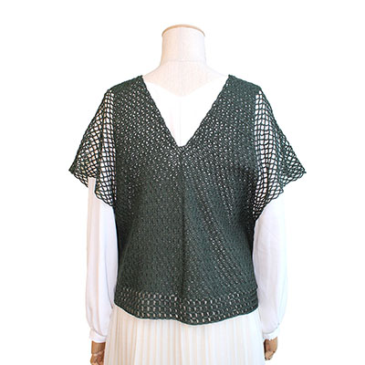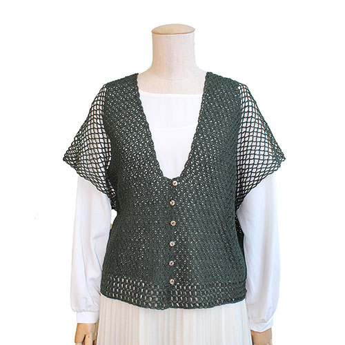 袖になっているネット編みは軽やかで涼し気です。小さな会ボタンも大事なアクセント。