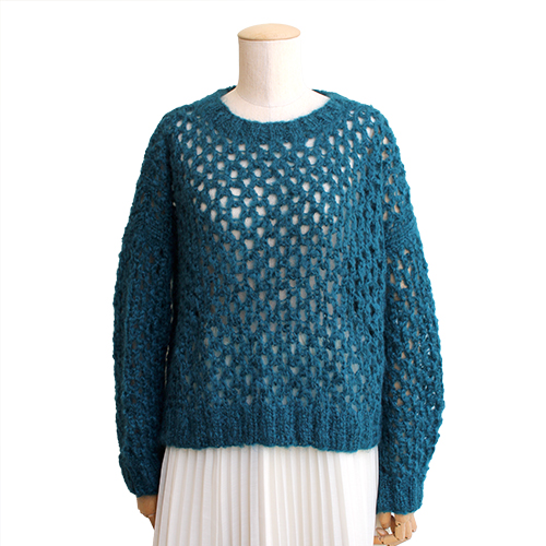 太糸を2目かけ目の穴あき模様で編んでいます。