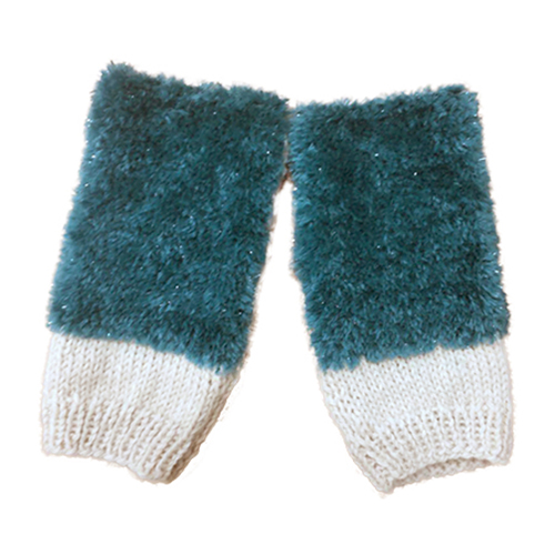 キラキラしたファーをベビーアルパカと組み合わせたハンドウォーマーです。