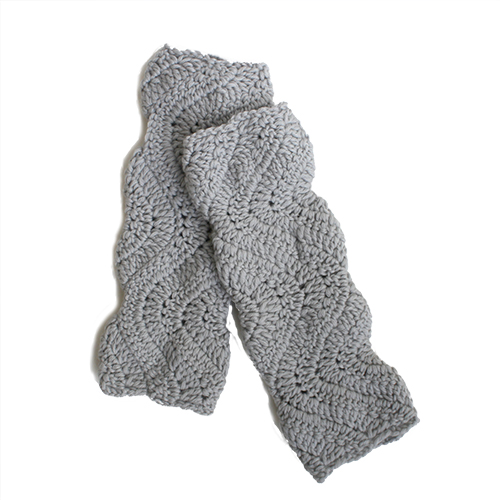 ロング丈のアームウォーマーは長編みの増減が大きなウェーブ模様になるデザイン。 編み始めと終わりを二つ折りにして接ぐときに親指穴を開けています。 素 材:ウール100% 使用針:かぎ針10/0号 サイズ:手のひら回り18cm 丈29cm ヨーロッパの手あみ掲載作品 * 同品種(リンカントno.9)での、お色変更も可能です ご希望の場合は、コメント欄にお色変更の詳細を入力してください(在庫がある色に限ります)