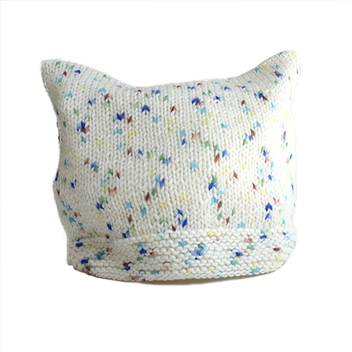 増減無くまっすぐ四角く編みます。 頭にかぶると両サイドが猫耳のようになります。 素 材:ウール100% 使用針:棒針6号 サイズ:頭回り42cm 毛糸だま掲載作品 * 同品種(ベビーアニープリント)での、お色変更も可能です ご希望の場合は、コメント欄にお色変更の詳細を入力してください(在庫がある色に限ります)