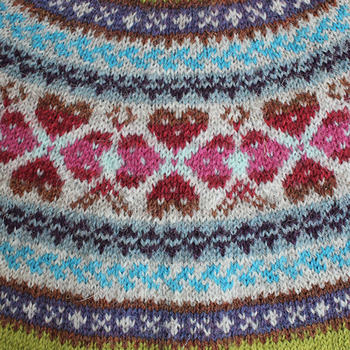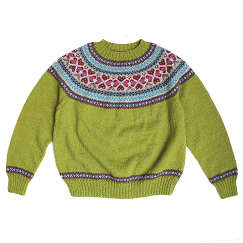 心温まるハート模様の編み込み丸ヨークセーターです。