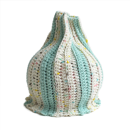 花のつぼみの様なカタチです。 2つのベビーヤーンの色を組み合わせてさらに愛らしい仕上がりに。 素 材:ウール100% 使用針:かぎ針6/0号 サイズ:頭回り36cm 深さ19cm *こちらの作品は書籍には掲載されておりません。 * 同品種(ベビーアニープリント×ベビーアニー)での、お色変更も可能です ご希望の場合は、コメント欄にお色変更の詳細を入力してください(在庫がある色に限ります)