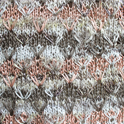 針を操りオリジナルのテキスタイルを自由にデザインできるのも手編みの面白さ。