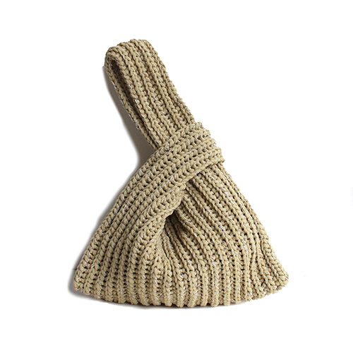 濡れても乾きやすい、この季節にぴったりの糸と光るラメ糸を引き揃えて編んでいます。