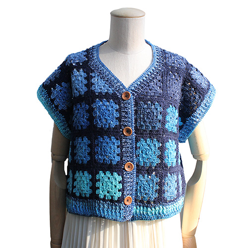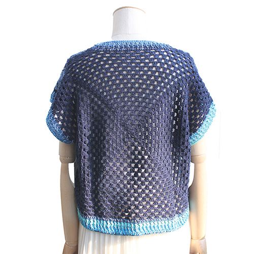 移りゆくグラニーモチーフのカラーリングは、1本のグラデーションヤーンが魅せる七変化。