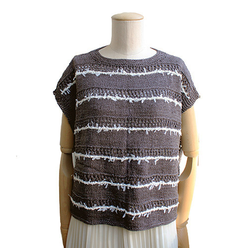 ナチュラルなコットンヤーンのベースに、ひらひらとしたリボンヤーンをボーダーに入れればさり気ないアクセントになってくれます。
