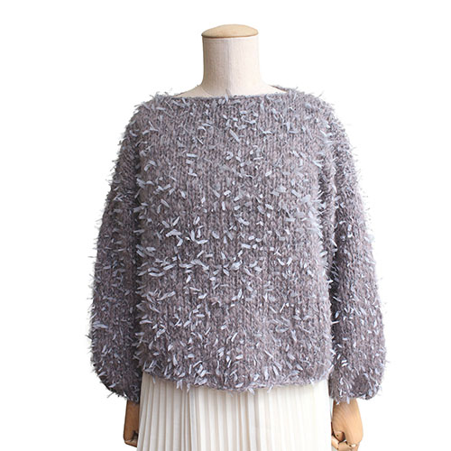 上質なモヘヤとチャーミングなファンシーヤーンを引き揃えた絶妙なコンビネーションニットです。