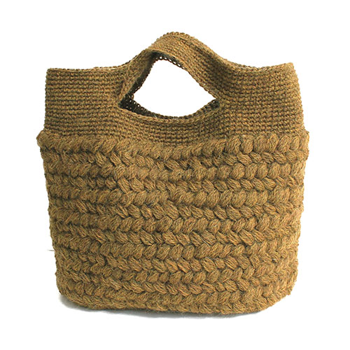 ぷっくりとした玉編みのヘリンボーンバッグは、定番のストレートヤーンで編んでいます。