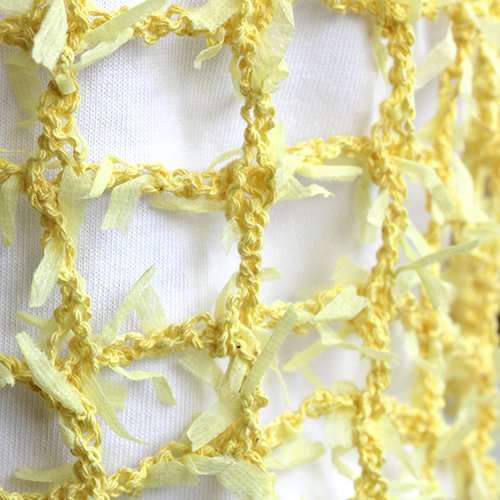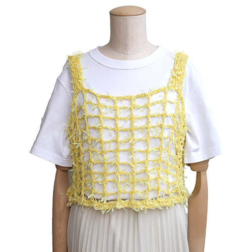 カジュアルスタイルのアクセントにしたい、8mmのかぎ針で輪に編んだメッシュキャミソール。 ひらひらと舞う軽やかな糸ときれいなカラーが青い空に鮮やかに映えます。 素 材:コットン72%, ナイロン28% 使用針:太かぎ針8mm サイズ:胸囲90cm 着丈40cm ヨーロッパの手あみ掲載作品 * 同品種(フロトン)での、お色変更も可能です ご希望の場合は、コメント欄にお色変更の詳細を入力してください(在庫がある色に限ります)