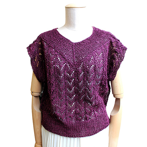 フレンチスリーブにして重ね着したり、1枚で涼し気な着こなしが楽しめます。 素 材:コットン40% レーヨン40% リネン20% 使用針:棒針6号 4号 サイズ:胸囲102cm 着丈50cm 裄丈28cm * 書籍には掲載されていないパピー企画室オリジナル作品です * 同品種(フォッシュ)での、お色変更も可能です ご希望の場合は、コメント欄にお色変更の詳細を入力してください(在庫がある色に限ります)