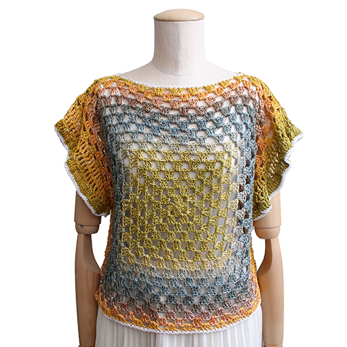 多色グラデのビッグなグラニーモチーフを身頃に。
