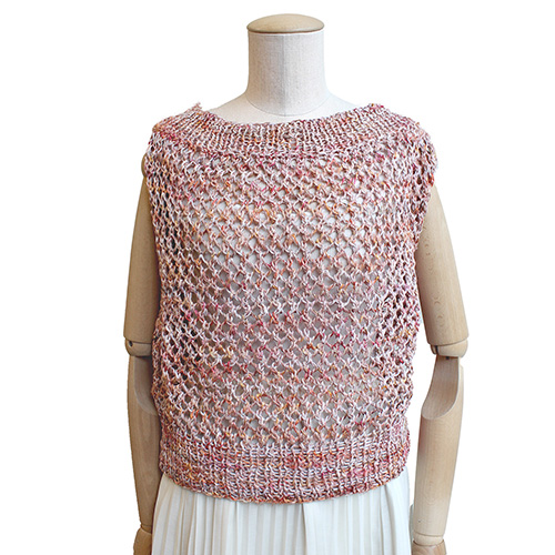 グラデーションが美しい糸と単色のテープヤーンの引き揃えが生み出す、ニュアンスのある質感と色目も素敵です。