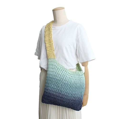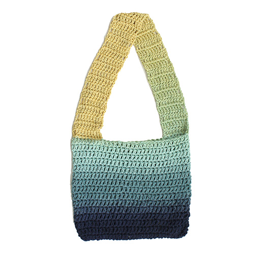 1玉で、シンメトリーなグラデーションが美しい実用的なトートバッグが編めます。