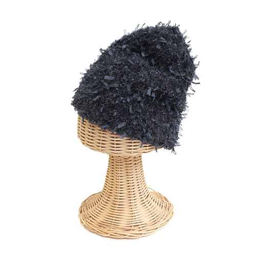 ふわふわのファーヤーンと、ひらひらとしたリボンヤーンを引き揃えて編んで華やかに
