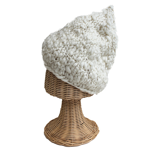 空気を含んで暖かく、やわらかな肌触りの毛糸で編むソフトクリームみたいなとんがり帽子 目数も段数も少なくて、編み終わったらできあがり 簡単がうれしいチャンキーニットです 素 材:ウール100% 使用針:太針10mm サイズ:頭回り 50cm 深さ 30cm ヨーロッパの手あみ掲載作品 * 同品種(ナーシェレ)での、お色変更も可能です ご希望の場合は、コメント欄にお色変更の詳細を入力してください(在庫がある色に限ります)