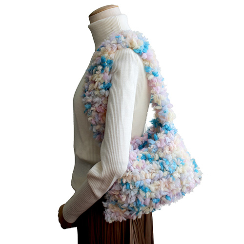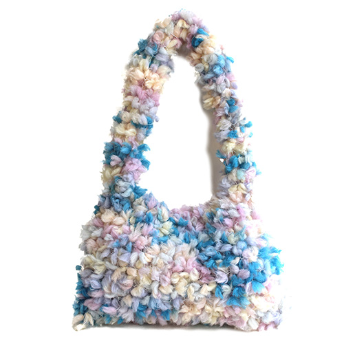 もこもこの編み地を編んでいる時間も、一緒に出かける時間もまた楽しい、なでて愛でたいワンマイルバッグ 棒針ビギナーにもおすすめしたい、ずっと表目を編むだけのガーター編みです 素 材:ウール93% ポリエステル7% 使用針:太針8mm サイズ:幅 28cm 深さ 20cm ヨーロッパの手あみ掲載作品 * 同品種(ラッコルタ)での、お色変更も可能です ご希望の場合は、コメント欄にお色変更の詳細を入力してください(在庫がある色に限ります)