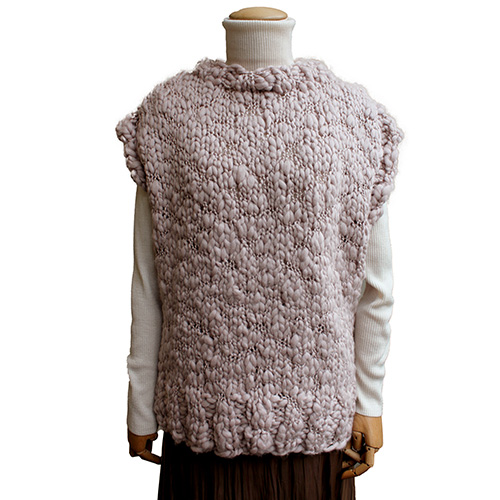 素材の凹凸を活かしたメリヤス編みのベストはサイズ感もカラーもユニセックスな仕上がり