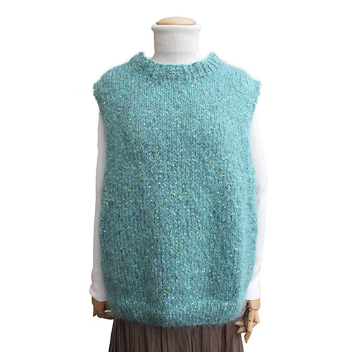 モヘヤと小さな粒粒が様々なグリーンでまとめられたロング丈のベストです 健やかな気分が味わえそう! 素 材:モヘヤ60% ウール16% アクリル12% ナイロン12% 使用針:太針8mm 7mm サイズ:胸囲 110cm 着丈 65cm 背肩幅 45cm 毛糸だま2025秋号掲載作品 * 同品種(カラメッレ)での、お色変更も可能です ご希望の場合は、コメント欄にお色変更の詳細を入力してください(在庫がある色に限ります)
