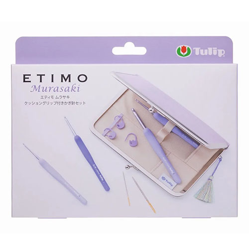 (Tulop)ETIMO Murasaki クッショングリップ付かぎ針セット エティモの特徴である、なめらかなかぎ先、持ちやすい形状で疲れにくく、手にフィットするクッショングリップ かぎ針専用のがま口ケースは、京都の職人が手作業で丁寧に仕上げています セット内容:クッショングリップ付かぎ針8本(2/0.3/0.4/0.5/0.6/0.7/0.8/0.10/0) とじ針2本(No.10.No.15)・段かぞえマーカー3個・がま口ケース1個