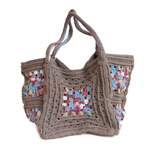 大小の変化系グラニーモチーフをつなげて、普段使いしやすいマルシェバッグに。