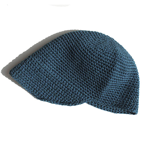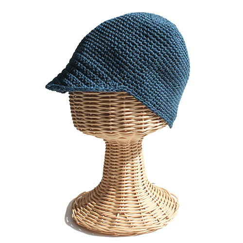 手編みといえば麦わら風ハットが多い中、このデザインは新鮮。カジュアルなスタイルをキリリとカッコ良く仕上げてくれるアイテムです。