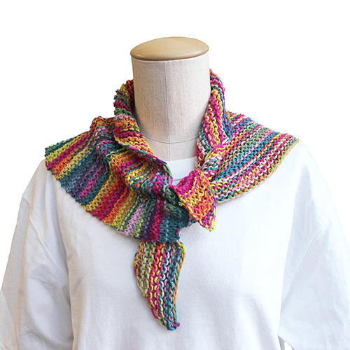 片側だけで増やし目をして編む、ガーター編みのゆるやかな三角ストールです。