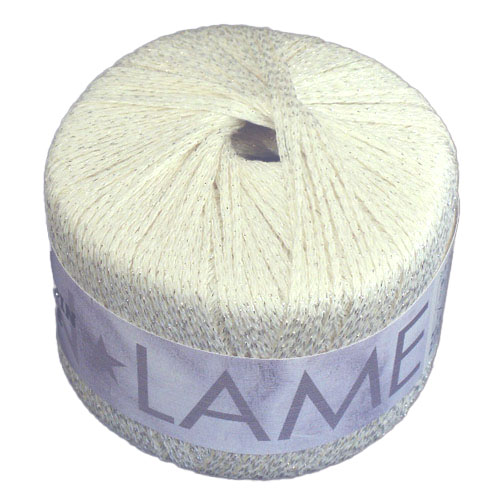 家蚕の高級シルクとリネンを組紐にし、そこに繊細なラメが絡んでいます。形状からくる反射と素材の光沢がマッチした高級糸。
