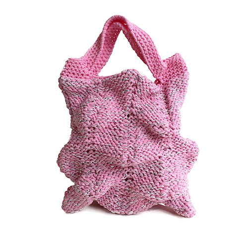 増やし目と減らし目の組み合わせで編地がポコポコするユニークなバッグ。