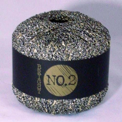 キュプラとナイロンのノット糸とラメのノット糸とを撚糸したファンシーなラメ糸。細い糸なので単独使いでなくウールのベーシック糸やモヘアのストレート糸と引き揃えて使うことをおすすめします。控えめなラメの光沢とノットが編地の中に見え、シックでおしゃれな雰囲気です。