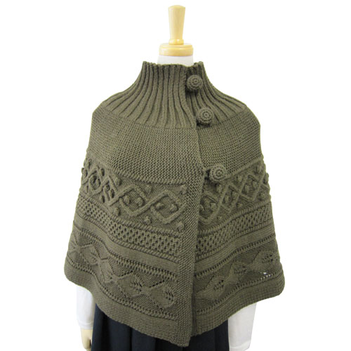 人気のアラン柄のポンチョ。 落ち着いたカーキ色で大人の雰囲気を楽しめます。 コロンとした、くるみボタンがアクセントに! 手編みの本掲載作品 サイズ:裾まわり141cm×着丈44cm 使用針:棒針6/0号・カギ針5/0号 * 同品種(クイーンアニー)での、お色変更も可能です ご希望の場合は、コメント欄にお色変更の詳細を入力してください(在庫がある色に限ります)