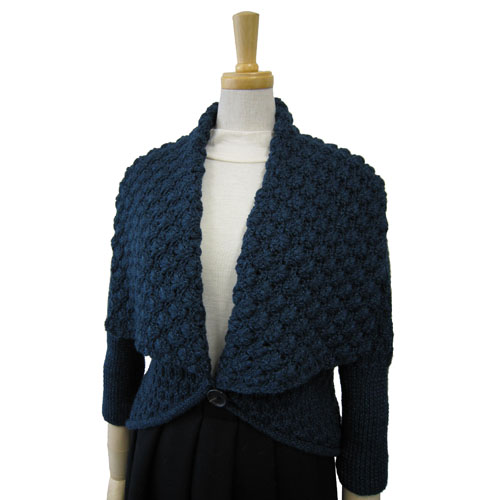 身頃は棒針編みの地模様。 ポイントの大きな衿はカギ針編みで、クラシカルな雰囲気になっています。 サイズ 胸囲93cm,着丈47cm,桁丈59cm 使用針:棒針6号 * 同品種(ボーボリ)での、お色変更も可能です ご希望の場合は、コメント欄にお色変更の詳細を入力してください(在庫がある色に限ります)