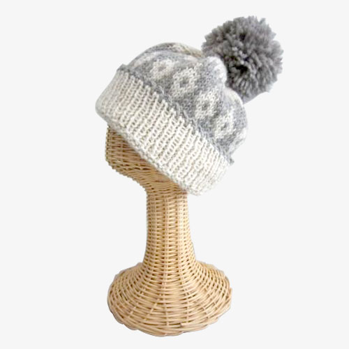 「かんたん2色編み込みベスト」とお揃いの編み込みキャップ。