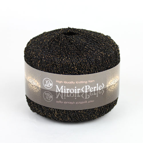 ミロワールのシリーズに新しいタイプが加わりました。「鏡」という意味のミロワールから連想されるキラキラ光るラメ糸を使い、ビーズの粒(フランス語で「ペルル」)のように見えるノットの糸を作りました。非常に細番手の糸なので、引き揃えて編む際のベースとなる糸の風合いを損なわず、繊細で上品な煌めきの編地に仕上がります。太さは超極細です。