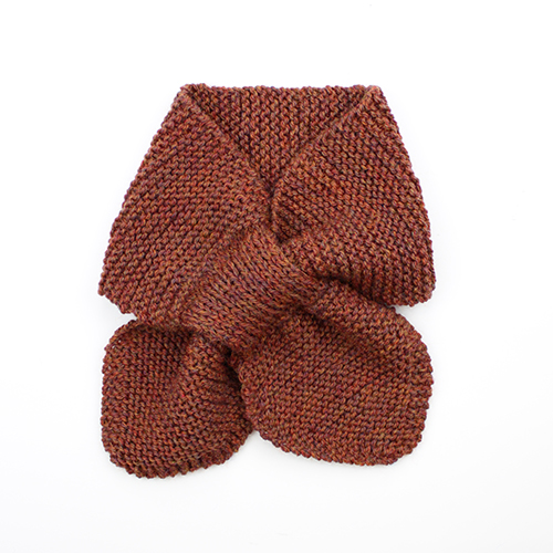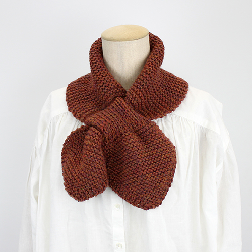 木の葉がそっと重なるように 交差して巻くマフラーは どこか懐かしいデザイン。 寒い日は、家でも巻いて温もりましょう。 ブリティッシュエロイカとともに掲載作品 素材:ウール100%(英国羊毛50%以上使用) 使用針:棒針:9号 サイズ:幅14cm 長さ79.5cm * 同品種(ブリティッシュエロイカ)での、お色変更も可能です ご希望の場合は、コメント欄にお色変更の詳細を入力してください(在庫がある色に限ります)