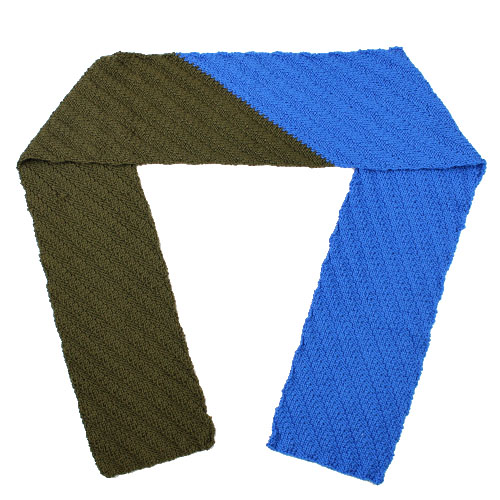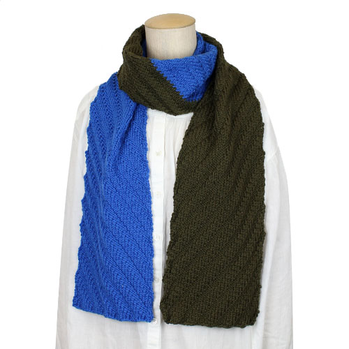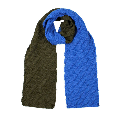 中央で切り替わるマフラーなら色合わせが無限大。巻き方によって配色が変わるので、違った表情を見せてくれる。