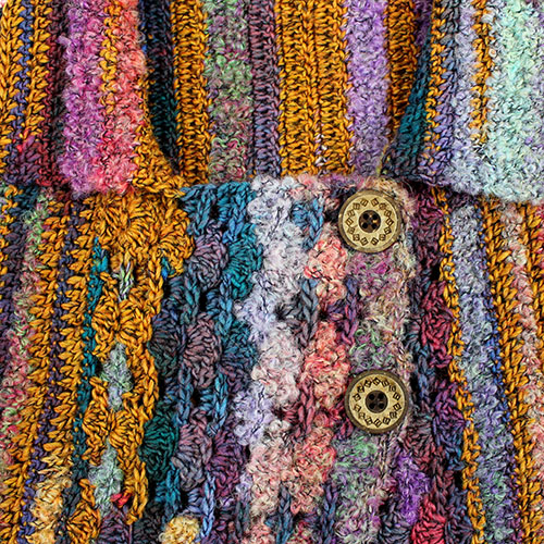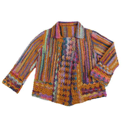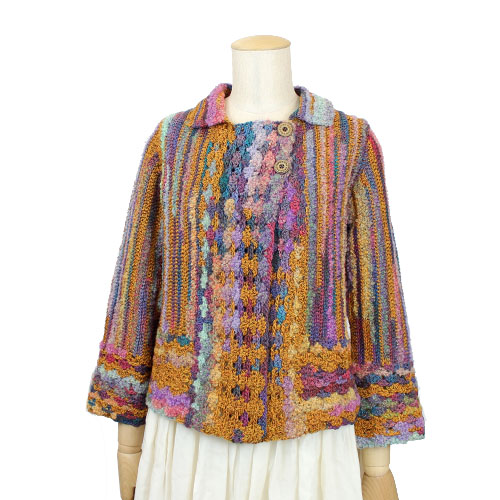 色と形状変化の面白さをを活かして、編み方向を工夫しています。 世界の編物2015-2016秋冬掲載作品 素材:ウール 82% ナイロン 18% 使用針:かぎ針5/0号 サイズ:胸囲92cm 着丈51cm 背肩幅34cm 袖丈44cm * 同品種(サルヴィ)での、お色変更も可能です ご希望の場合は、コメント欄にお色変更の詳細を入力してください(在庫がある色に限ります)