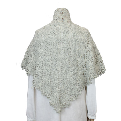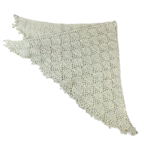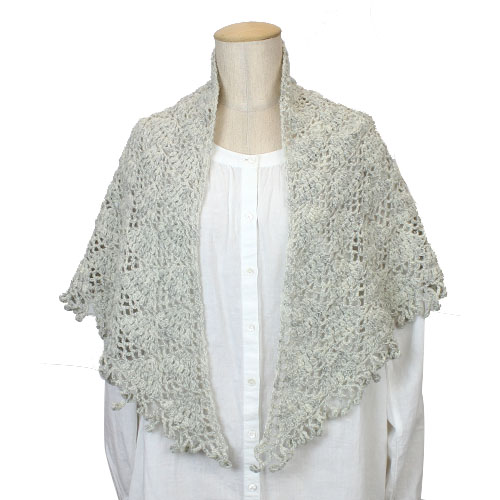 薄い仕上がりのカギ針編みの三角ショールは、軽くて暖かい上にもち運びにもとても便利。 パピー発:手編みの本 Vol.13 掲載作品 素材:ウール 100% 使用針:かぎ針6/0号 サイズ:幅 約148cm 丈 約74cm * 同品種(ブリティッシュファイン)での、お色変更も可能です ご希望の場合は、コメント欄にお色変更の詳細を入力してください(在庫がある色に限ります)