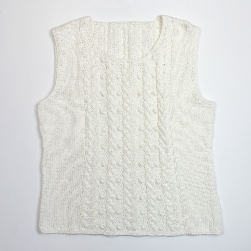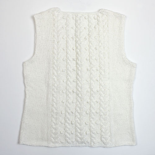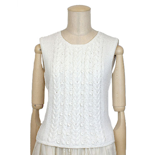 小さなボップルとケーブルを組み合わせたスリーブレスセーター。マットでナチュラルな質感のコットン素材です。