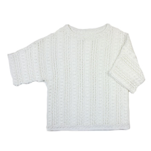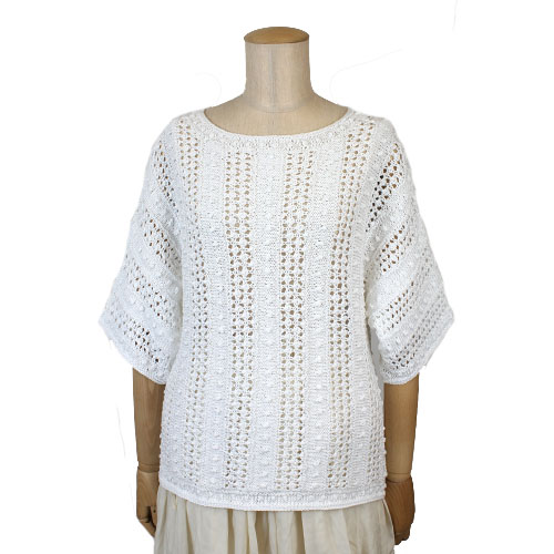 クラシカルなレースとボップル模様を組み合わせたセーターです。日差しに似合う白がおすすめ!
